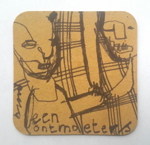 Herman Brood tekening op bierviltje,met HBM certificaat